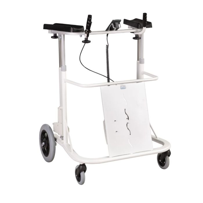 The Darter Bariatric Outdoor Electric Rehab Walker allows heavier users up to 47st to access outdoors without having to compromise or change walking aid. The large rear wheels compensate for uneven or irregular ground and the front swivel castors aid in direction. The Darter Bariatric Outdoor Electric Rehab Walker comes with a single hand brake as standard, which can be configured according to user needs or preference, and provides additional safety when outside. Easily adjusted from 89cm-128cm in height via the dual electric actuators and the ergonomic armrests, which can be adjust to suit user build, provide comfort and security when out walking.