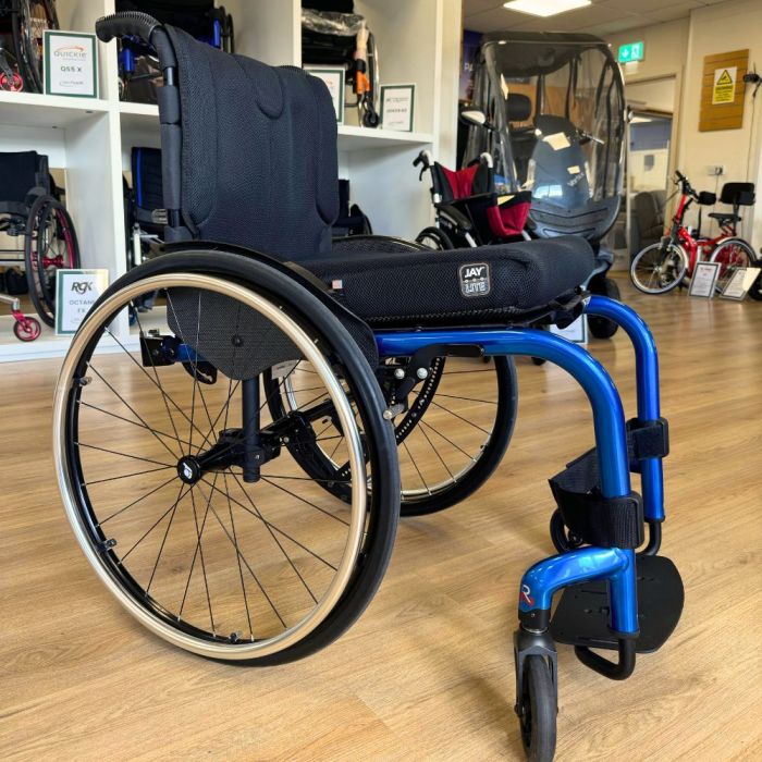 A lightly used Joker R2 active wheelchair from Progeo. The Joker R2 is an ultra lightweight while offering maximum adaptability. Ultralight from only 0.9 stone. Folding backrest makes it ideal for storage and transportation. Wide positioning One-piece tubular footplate enhance the overall rigidness. Excellent leg support. Front frame with abduction. Height and angle adjustable backrest that locks in the folded position.