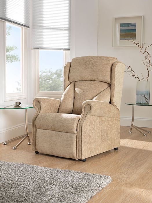 The Senydd lift chair from Wilcare features a tilt in space mechanism. When reclined this allows the fixed back and seat to move with one another, promoting better posture.