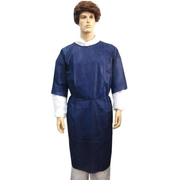 Disposable short sleeve patient examination gowns manufactured from 50 gsm non woven polypropylene. Non sterile, universal size. Colour Dark Blue. Case Size 10 packs x 10 pieces.