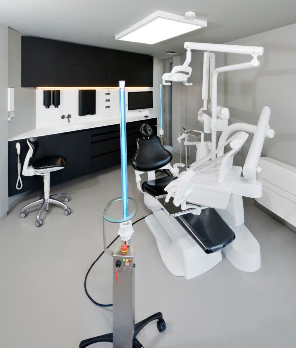 Instant UV-C decontamination system for Operating Theatres, Dental Clinics, Medical Practices, Care Homes and all Healthcare settings.UV-C irradiation is highly effective in inactivating and inhibiting SARS-CoV-2 replication. UV-C irradiation is highly effective in inactivating and inhibiting SARS-CoV-2 replication and is significantly more efficient than using an air purifier. This system is future proof as it can be used currently in regards to Covid-19 but also in the future with other possible contaminations. It is fast and effective to use - it only take 4-5 minutes to complete its process - so less work for staff. This system is particularly suited to Operating Theatres, Care Homes, Medical Practices and Dental Clinics. Dental care frequently generates a strong aerosol, which is potentially infected with the new coronavirus.
