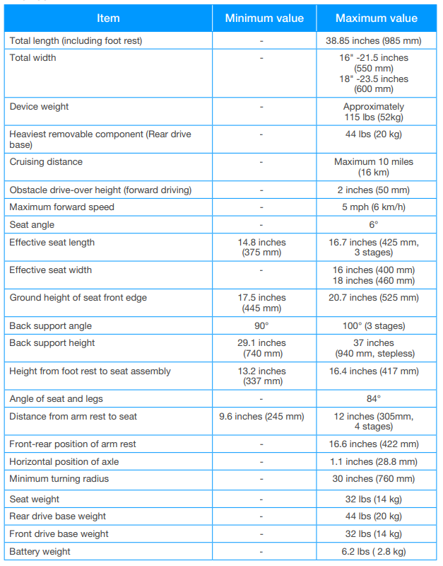 - Unique omni-wheel system capable of a tight turning circle 29.9"