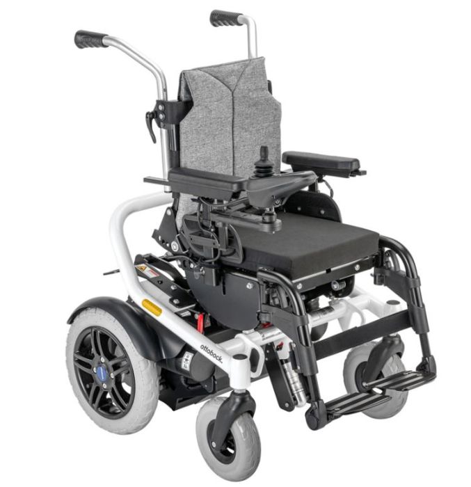 The Skippi electic wheelchair gives children with severe disabilities a measure of independence. Children gain mobility and therefore the independence to master everyday life. In addition to other optional power functions, the lift seat moves children up to eye level. The powerchair can be taken apart in just a few simple steps for transport and readily fits into the boot of a compact car. The powerchair can also be equipped with electric or mechanical seat tilting, electric back angle adjustment, attendant controls, therapy table and seat pan adaptor. Various foot rests and head support systems are also available.