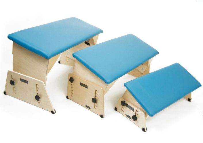 The slotted legs make it quick and easy for therapists to raise, lower or tilt the seat surface. Many children benefit from a tilted surface, which places more weight on their feet and aids postural control for better arm and hand function.