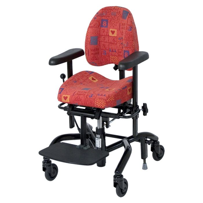 The REAL-chair 9300 has a manual lift function and can be delivered with several additional features such as - tilt in space, adjustable backrest, head rest and a brake as it is a part of the same modular system as the adult chairs.